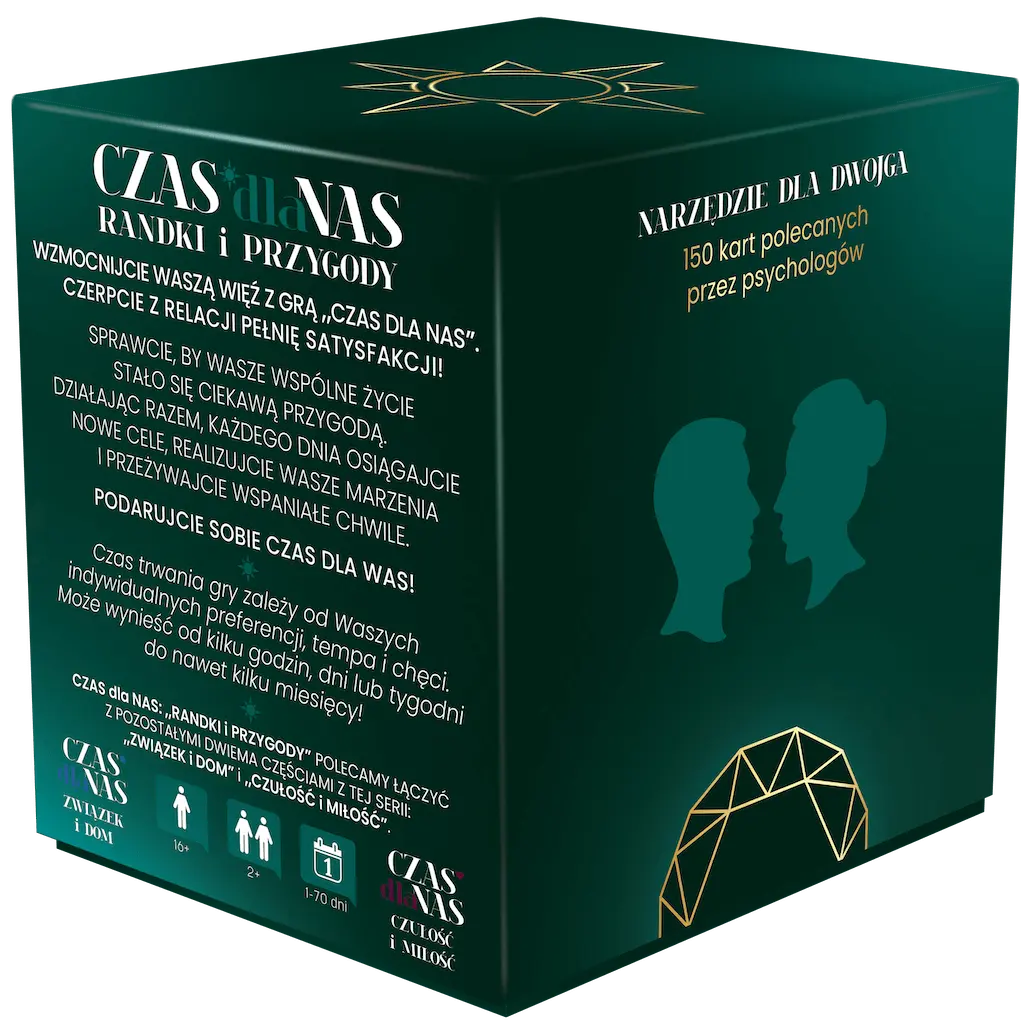 Wyruszcie na wspólnie poszukiwanie nowych wrażeń i niezwykłych doznań dzięki wyjątkowym zadaniom zawarym na kartach! Gra CZAS dla NAS Randki i Przygody zachęci Was do opuszczania domu i aktywniejszego spędzania czasu na wiele rozmaitych sposobów!