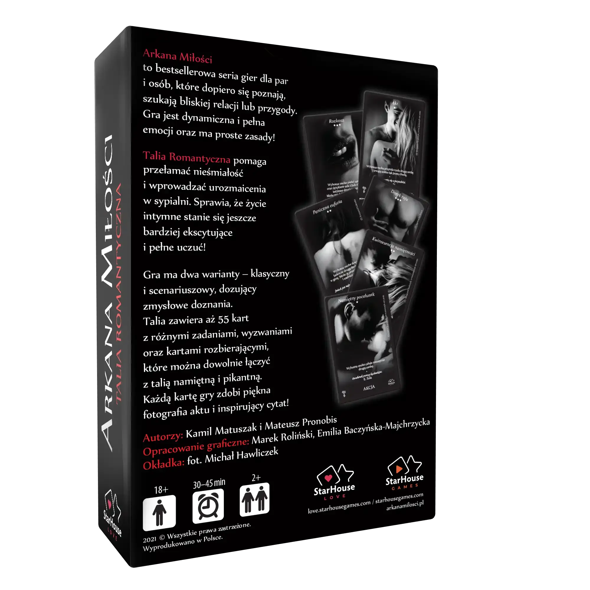 Gra zawiera aż 55 kart z różnymi zadaniami, wyzwaniami oraz kartami rozbierającymi, które można dowolnie łączyć z talią namiętną i pikantną. Każdą kartę gry zdobi piękna fotografia aktu i inspirujący cytat!